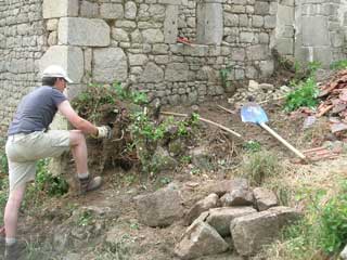 La première étape est le dégagement de toute la végétation et des racines qui ne font pas bon ménage avec la maçonnerie.