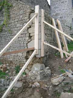 La qualité de l'étaiement est primordiale pour la sécurité des personnes travaillant en dessous. Il faut ausi éviter aussi le risque de désolidarisation du pan de mur pendant l'intervention.