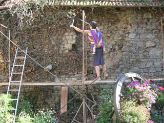 sous la conduite de Michel AUZEMÉRY qui a expliqué la manière de faire pour la reprise de ce parement de mur.