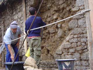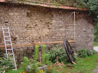 Travaux de reprise d'un parement de mur au village du Mas,